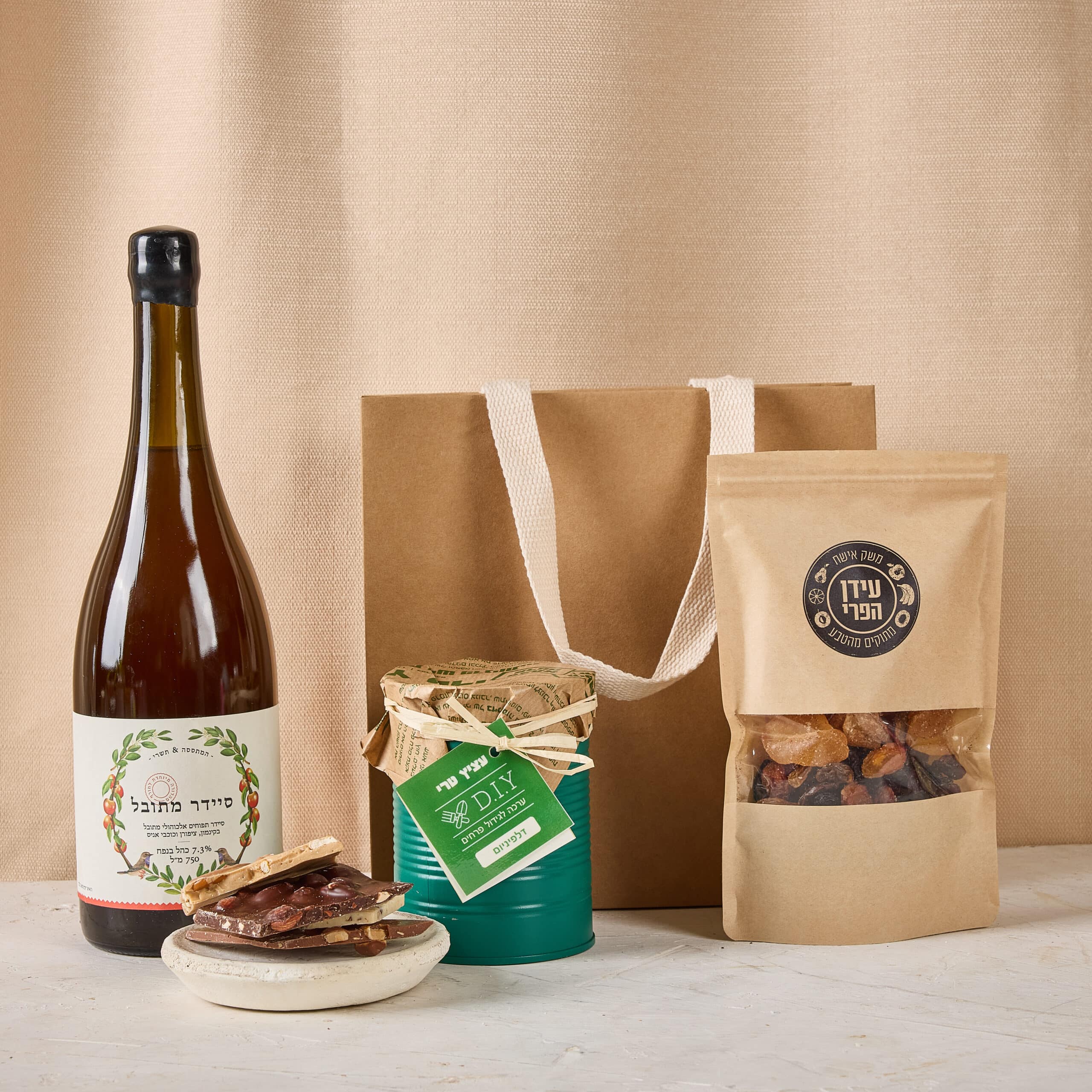 מארז חגיגי, מהודק ומתוקתק לט״ו בשבט, מתנה חברתית לאנשים אהובים, כל מוצר עם סיפור מלא השראה.