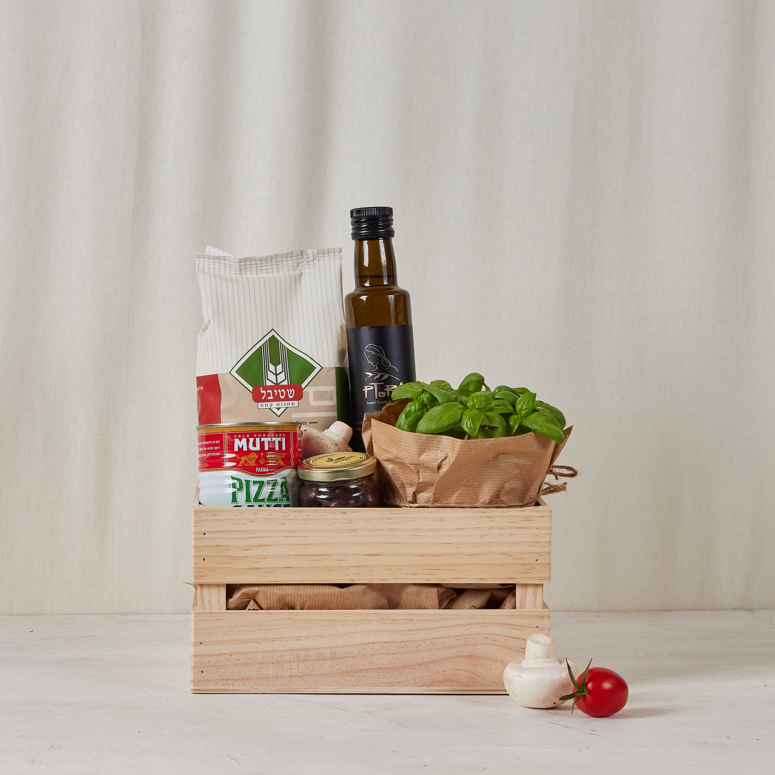 כל מה שצריך לפיצה + מתכון סודי שאנחנו מוכנים לגלות בשביל שתהפכו לפציולו לערב אחד. המארז מגיע בשקית קרטון עבה עם אופציה למיתוג ע״י מדבקה