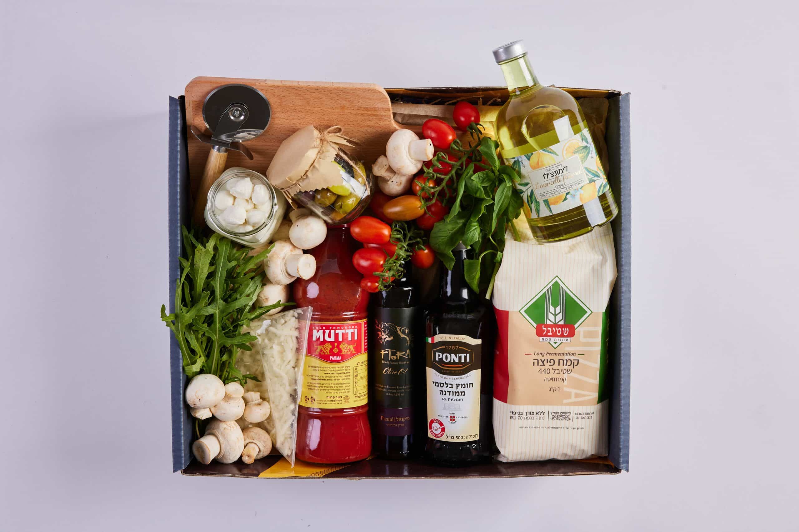 מארז פיצה ענק ומפנק עם כלללל המצרכים להכנת פיצה ביתית! מתנה מושלמת כחוויה משפחתית.