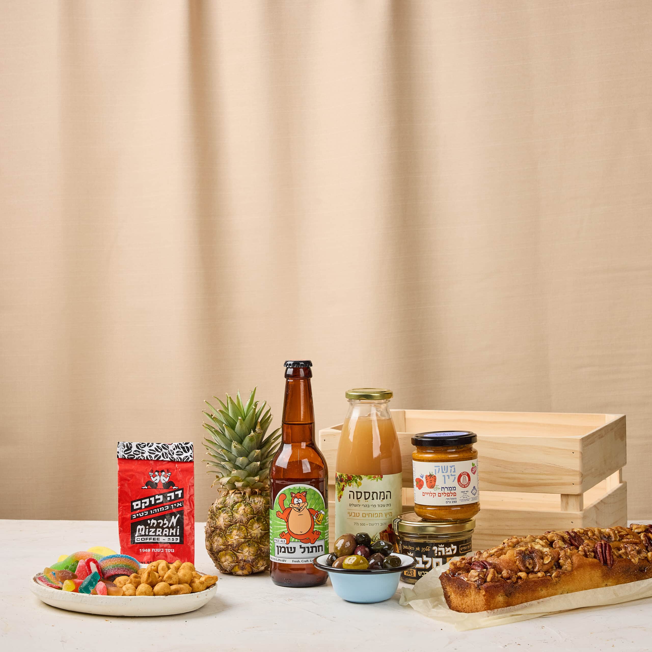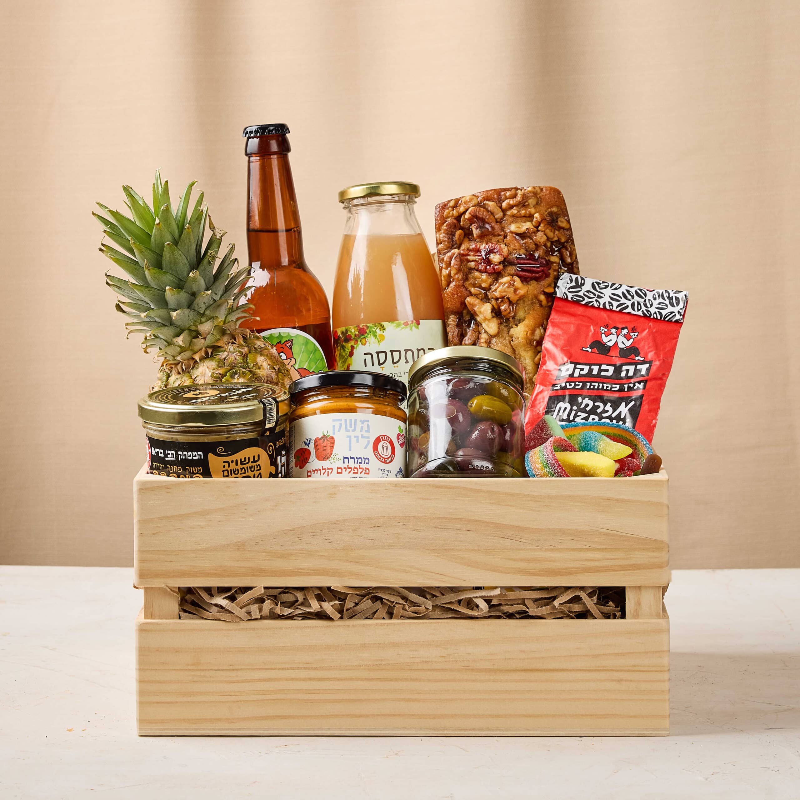 לקחנו את ארגז השוק המקורי שלנו והכנסנו לגרסה קטנה ומטריפה! מארז מהשוק שיעשה לכם חגיגת שוק אמיתית בבית. ארגז בו נאספים פריטים מלמעלה מ-10 עסקים שונים בשוק התקווה ושוק לוינסקי ונארזים טרי טרי ביום המשלוח. מתנה מקורית ומשמחת במיוחד!